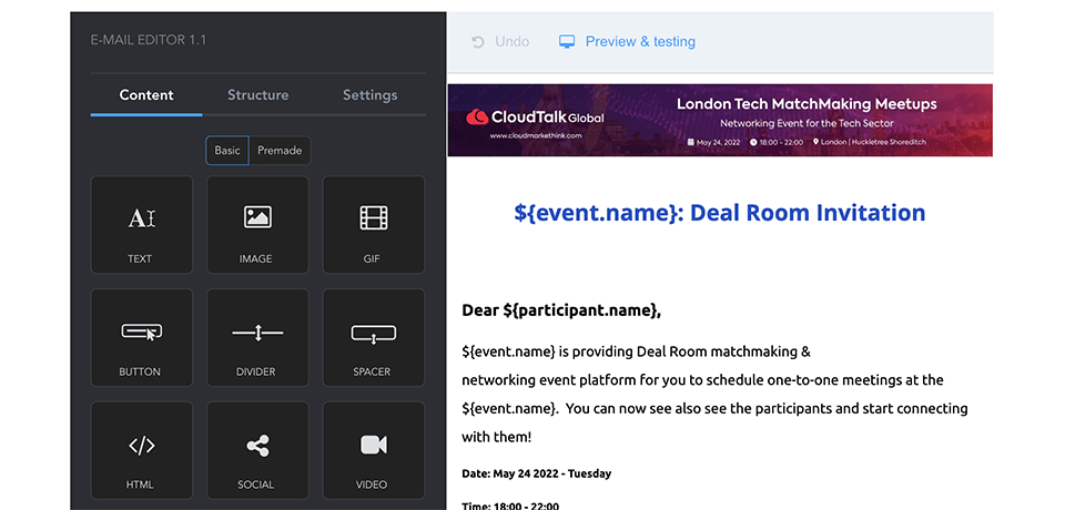 Manage Schedule: Deal Room offers plenty of pre-scheduling and pre-booking options to help participants and partners to send meeting requests to each other. This feature gives them many opportunities to plan the event day based on the schedule, as well as help them in arranging meetings day.
