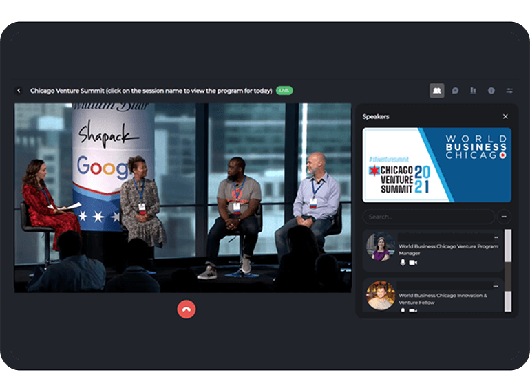 Make a virtual, interactive roundtable for your attendees, sponsors, and audience to enable enhanced participant engagement.